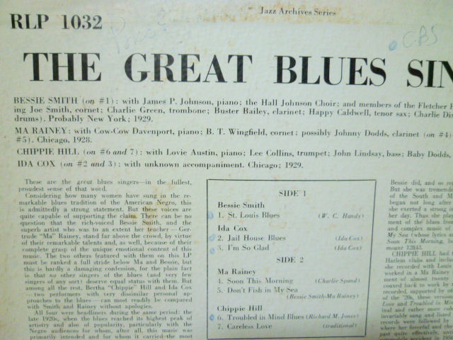 ベッシ―・スミス、マ・レイニー・、アイダ・コックスの1928~1929年の録音とチッピ―・ヒルの1946年録音。