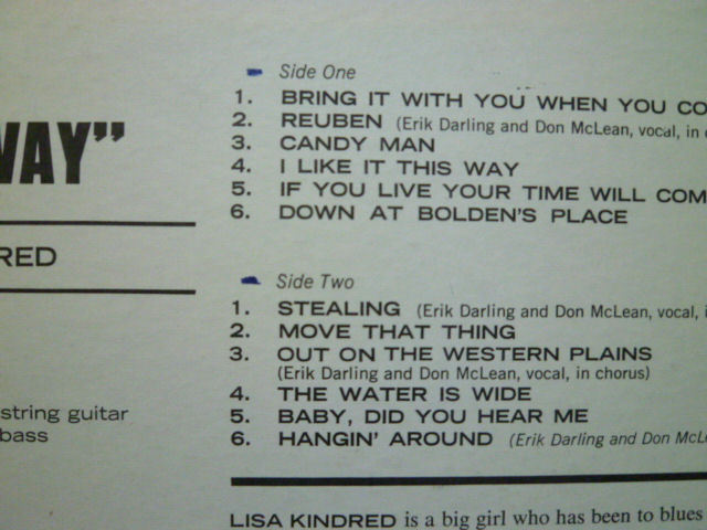 1965年の1作目。ギターはエリック・ダーリン、そのほかウッド・ベース、ドラムスが付いてます。